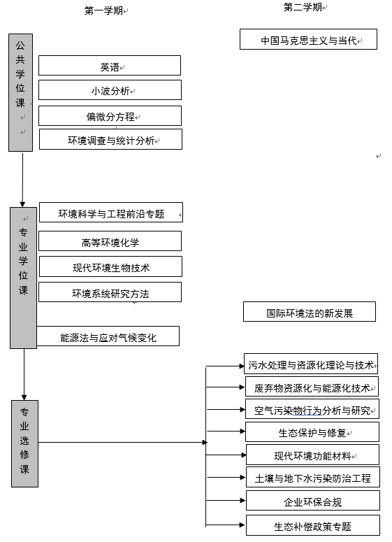 本着培养环境科学和工程相关教学、科研、管理和应用的专业高级人才的宗旨,确定一套科学合理的课程体系,基础课与专业课比例恰当合理,课程内容设计和安排将学科基础性和发展的前沿性并重。