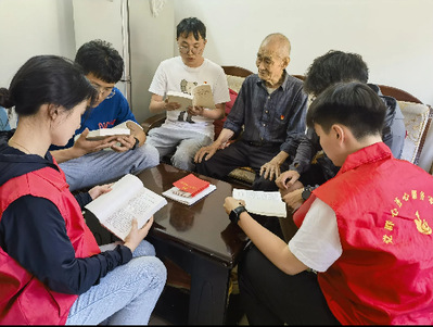 活动中资环研究生党员到高行动不便的离退休高龄党员干部的家中为他们宣读党章、宣讲习近平新时代中国特色社会主义思想,让老党员足不出户也能感受到学习热潮,保持思想常新、信念永存,做到“离岗不离党,退休不褪色”。此外,资环研究生党员还为各位老党员同志打扫卫生、收拾碗筷,用实际行动彰显新时代青年党员的青春活力与担当。
