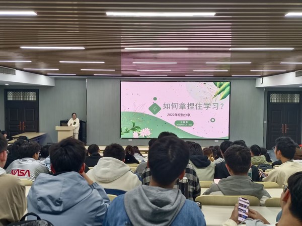 本次交流会在同学们殷切的期望与热烈的掌声中隆重开场。交流会旨在解答同学们学习生活上的问题,为如何充实度过大学的四年生活提供经验借鉴。首先,马晶晶分享了怎样提高自制力、怎样规划自己的空闲时间的经验,让同学们对如何高效地学习有了进一步的理解和感悟。孙浩重点讲解了大学生应如何对抗精神内耗,要对自己负责,相信自己。方卫芳结合自身经历,讲解要积极参加学科竞赛和社会实践。杜博轩讲解了拥有一个精彩的大学生活的宝贵的十点建议,其中包括学好英语、培养爱好、认真锻炼等。最后,王盈盈就“如何拿捏住学习?”这一主题分享了她在过去大学时光里的学习经验与方法,认真听讲,及时总结复习,保持一颗积极的心,这些小的的细节往往是克敌制胜的法宝。