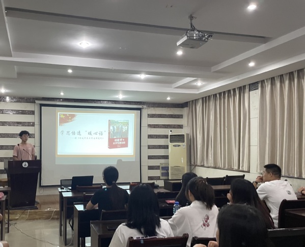 李志豪同学带领在场学生共同观看领学视频与PPT,分别从如何将个人理想融入时代、在科技道路上应如何行走、如何将所学投身于国家治理这三个问题入手,向大家讲述《习近平与大学生朋友们》的思想指导。随后,从书中选取并分享了部分金句:“年轻人要‘自找苦吃’”、“只有到社会中与群众打成一片、扭到一起后,产生了社会责任感,才能获得真知灼见”……号召同学们从这三个问题出发,学思悟透总书记的“暖心话”,树立与时代主题同心同向的理想信念,勇于担当时代赋予的历史责任。