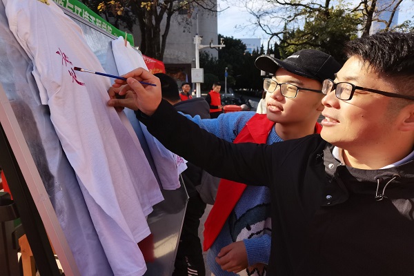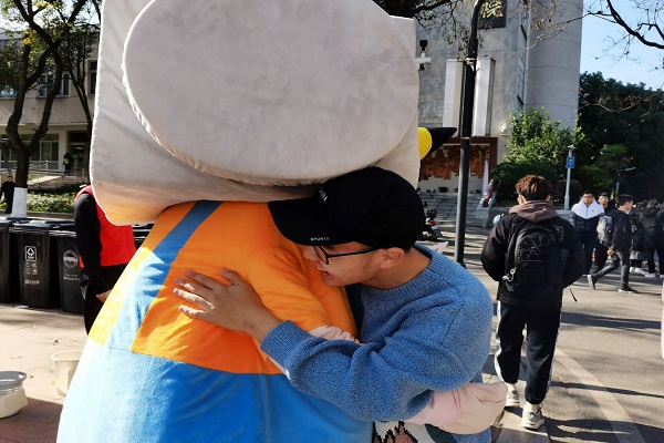 活动由“爱的抱抱”、“防艾知识问答”、“为‘艾’涂鸦”、“为‘艾’盖章”四个部分组成。在“爱的抱抱”环节中, 一位志愿者身着玩偶服,手举一块写着“假如我是一个艾滋病病人,你愿意给我一个拥抱吗?”的牌子,路过的同学纷纷过来与其拥抱,表达了对艾滋病病人的关怀和对防艾宣传活动的支持。防艾知识问答环节引导同学们在知识问答过程中对艾滋病有了一个全面而深刻的了解。为“艾”涂鸦活动中,参与者在文化衫上画下或写下对艾滋病患者的祝福,传递爱心,促进全社会关心和爱护艾滋病患者。最后,参与者按下自己的拇指印,并汇聚形成红丝带的样式,表达对艾滋病患者的关怀和理解。活动现场互动频繁,气氛热烈,营造了一种关注艾滋病、关爱艾滋病患者的校园氛围。