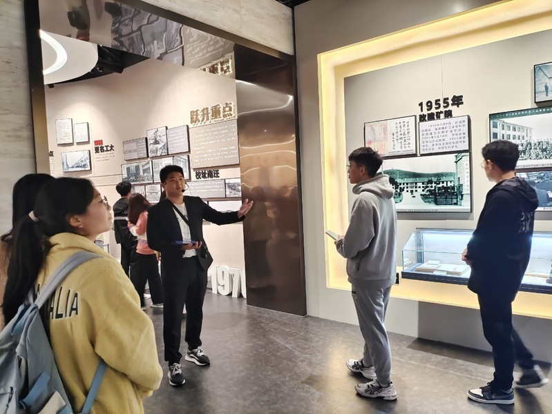 校史馆是学校发展历程的真实写照,是学校办学历史的积累沉淀,也是学校文化传承的重要载体和工大精神的集中体现。在讲解员的引导下,同学们依次参观了事业初创、跃升重点、改革前行、创新发展、硕果累累和校友风采六个展厅。馆内珍贵的文物资料,融合着现代的展出技术,全方位地展现了学校悠悠历史与深深底蕴。同学们认真聆听学校的办学历史与辉煌成就,深刻感受工大七十六年的峥嵘岁月。