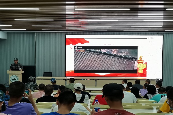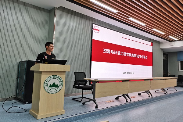 环境工程18-1班刘珺芳、代彦翔及地理信息科学18-1班付海波三位同学分别以“弘扬爱国精神,放飞青春梦想”、“坚定理想信念,立志报国从军”、“我的军旅故事”为主题,详细介绍了他们在部队服役期间的生活及训练情况,充分肯定了服役经历对自身成长历练的重要影响。同时,他们结合自身服役经历及世界发展大势,激励所有新生要增强爱国主义精神,立鸿鹄志,做奋斗者,将个人梦想与国家民族利益相融合,努力学习专业文化知识,努力成为德智体美劳全面发展的社会主义建设者和接班人。最后,他们还对参军入伍的国家资助政策进行了简要介绍。
