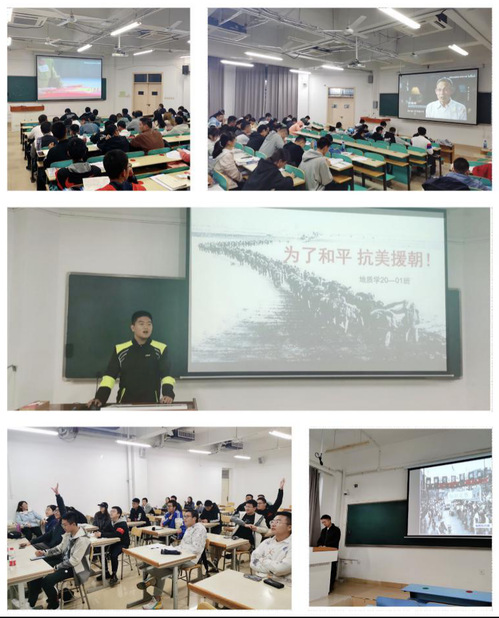 集体观影学,让“四史”学习“润心田”。学院组织各团支部观看《为了和平》大型电视纪录片,该片回顾呈现中国共产党领导抗美援朝战争的光辉历程和宝贵经验,全面反映抗美援朝战争的正义性质和伟大胜利、丰富内涵和时代价值,集中展示中国人民志愿军的英雄事迹和革命精神,充分彰显中华民族不畏强暴、维护和平的坚定决心和巨大贡献。根据纪录片六集不同主题内容,分别开展六个主题会场“大学习大讨论”活动,在《正义担当》中,地质类20-1班对于中共中央作出抗美援朝保家卫国历史决策的历史背景进行了冷静思考,在《血性迸发》中,环境工程20-1班同学纷纷对于“一不怕苦二不怕死”志愿军战斗故事发表感想,共同感悟新中国的国威和人民军队的军威。其中地质类20-1班的叶英豪表示,通过这次学习,我对抗美援朝战争的理解进一步加深,更加感觉到前辈的不易,新中国一步步走来的艰难,今天的美好生活,是那些曾经在抗美援朝中做出牺牲的英雄的功劳,向他们致敬。