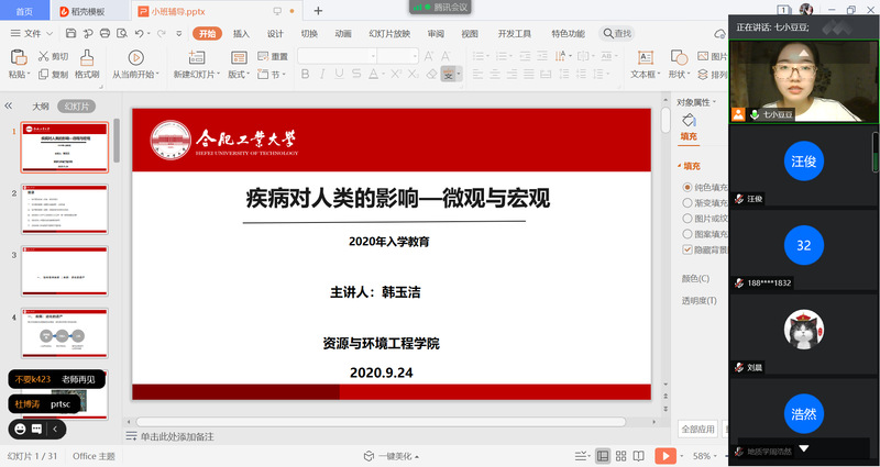 2020年9月24日晚,taptap点点官方网站通过腾讯会议,开展“疾病对人类的影响——微观与宏观”主题入学教育,主讲人韩玉洁老师从生物学、社会学角度出发,为2020级新生讲解了疾病与人类的关系。