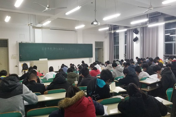 为了进一步提高我院学生学习能力,培养良好的学习习惯,以考促教、以考促学,2019年11月20日晚,资环学院2019级利用晚自习时间在多个晚自习教室内举行本学期第八期周测,本次考试过程中由各班“临时班主任”监考,考试内容为大学数学,试卷由各班学习委员轮流根据本周及近两周所学知识进行命题,着重考察基础知识。