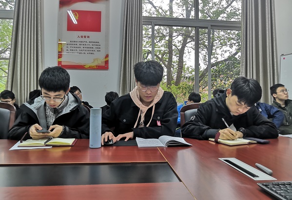 支部预备党员贾诚浩同学就自己准备的PPT进行了学习内容介绍和要点讲解,支部预备党员郧若麟同志和杜衡威同学针对政治建设以及对重大事项的处理进行了发言,介绍了自己学习了两本文件后的心得体会,并呼吁各位同志对于关键性文件的学习要端正态度,认真领会。最后支部党员梁放同志总结道作为学生骨干和学生党员,我们要积极主动做表率,认真学习系列文件精神,领悟上级组织想要传达的信息,在课余时间多思考多领悟,做好党员的义务和责任。