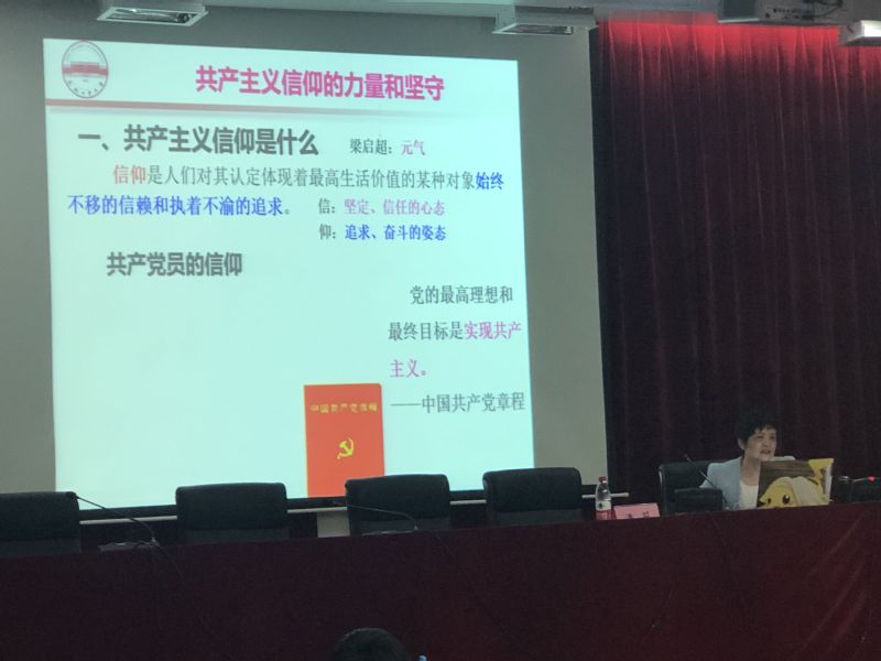 4月25日晚,学院举行了专题党课。马克思主义学院潘莉教授应邀为学院师生作题为《共产主义信仰的力量和坚守》的专题讲座。