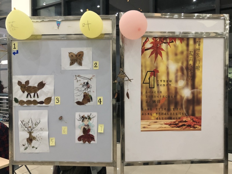 “传创新精神,显环保意识”问答环节结束后,各展区纷纷热闹起来,人头攒动。落叶传情,落叶不归根,DIY自制明信片等一系列丰富的活动激发起大家的创作兴趣。以落叶为素材,以叶作画,创造富有想象力的手工作品,利用植物叶片DIY绿色明信片,将自己的祝愿写在落叶上,制作属于自己的绿色明信片现场投递于邮箱,将美好的祝福送予亲人、朋友。大家制作的作品各具特色,内涵丰富,用不一样的方式向同学们传递了环保的信息,展现了校区学子深厚的人文素养和勇于创新的精神面貌。