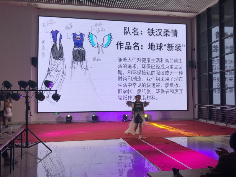 晚上七点,音乐协会两位同学作为本次环保节的演出嘉宾为观众们演唱的歌曲《王妃》点燃了全场,接着本届“环保时装秀”服装设计大赛的获奖选手为观众们表演了一场精彩的环保时装秀。各位选手穿着自己制作的精美服装向观众展示:身边废弃物品通过自己灵巧的双手也可以变成华丽的服装。获奖选手们精彩的表演结束后,所有观众观看了一部环保宣传片,影片中环境污染、自然灾害给人类带来的危害通过画面直观地展现,向大家宣传了保护环境的重要性。观看完宣传片,主持人与现场观众开展了精彩纷呈的环保知识竞答互动环节。在对环保知识的提问过程中,同学们纷纷挖掘自己有关环境保护的知识储备,积极踊跃举手抢答问题,将现场气氛推向了高潮,问答环节在活跃现场气氛的同时也向同学们普及了环保知识。