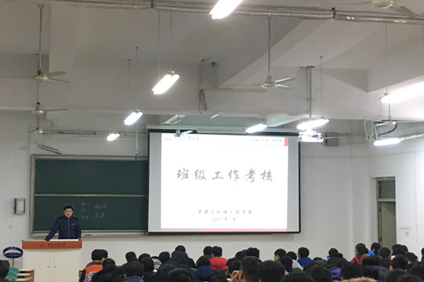 “一班一品”班级特色文化建设研讨会主要围绕班级品牌、班级文化、优良学风、常规检查、科技创新、文体活动、志愿服务、社会实践、班级获奖和工作计划等十个方面展开。研讨中,各班级结合实际情况,通过精美的PPT,用生动的语言展示了班级建设成果,分享了班级建设经验,体现出班级的特色与文化。其中,环境工程2016-1班班级微信公众号的运营以及各种特色活动和地下水2016-1班细致的工作计划尤为突出,得到在场师生的一致认可。