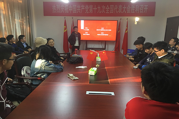 中国共产党第十九次全国代表大会于2017年10月18日至10月24日召开。尽管十九大已经闭幕,但十九大报告中的先进思想和精神需要我们学习。为了使同学更加了解十九大内容,环境工程15-1班于2017年10月30号下午,在西教307举行了学习十九大活动,党员带领全体支部成员深入学习理解党的十九大报告内容。 此次活动由项学芃统筹,胡振宇、任安然等搜集相关资料,高旭为同学们讲解十九大报告。