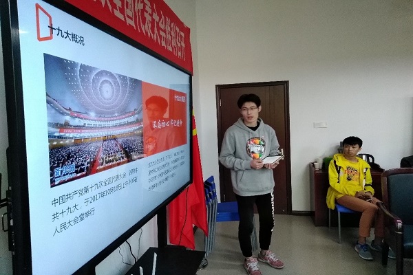 此次活动由党员孙铭琦同学主持,主要从十九大概况、习近平新时代中国特色社会主义思想、中国社会主要矛盾转变和生态文明建设四个方面向同学们讲述了此次党的十九大的主要会议内容和会议精神。活动中同学们认真学习党的十九大精神,并以习近平新时代中国特色社会主义思想为指导,树立远大理想抱负。相信经过这次活动,同学们不仅了解了党的十九大,也深知国家的发展需要我们当代大学生做出自己的贡献,努力学习,提高自身综合素养,为中华民族伟大复兴的中国梦而奋斗。