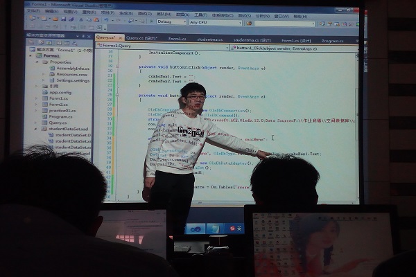 本次活动中,年潇班长主动为同学们讲解数据库开发方面的相关知识,主要针对班级同学们在数据库学习过程中可能遇到的难题和薄弱环节展开讲解,帮助同学们攻坚克难,更好的掌握数据库编程的相关知识。同时在连续讲解了两个小时的数据库知识以后,年潇班长并没有立刻休息,而是接着为第二天的cad考试给同学们做了些考前分析。