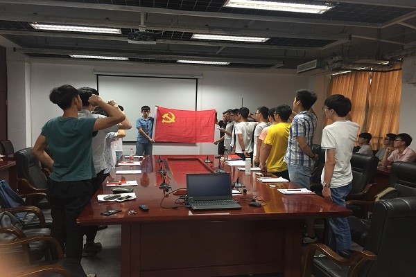 随后,支部组织了发展对象的入党宣誓活动。在场的五名学生党员以及12位发展对象面对党旗,庄严宣誓,真正展现出大家对党的崇高敬意。大会结束之际,谢晶晶老师对发展党员寄予希望,希望他们随时与党组织保持一致,为同学服务,为成为一名合格的共产党员不懈奋斗。本次答辩大会也在大家的掌声中圆满结束。