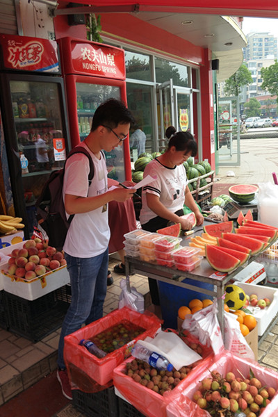 调研前,辅导员组织学生骨干进行了调查问卷的设计与工作布置。调研中,同学们不怕苦、不怕累,克服高温酷暑的环境,分小组对学校周边的商家进行采访调查和问卷发放。商家们普遍反映工大学生在消费时经常使用文明用语,积极支持光盘行动,购物理性不盲从,很少出现铺张浪费的情况。