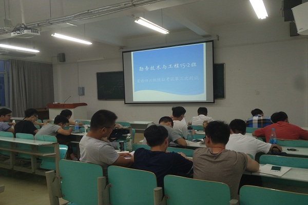 英语四六级模拟考试,是勘查15―2班的学风建设活动之一。在英语四六级考试即将来临之际,为帮助同学们全力备考,提高班级四六级通过率,6月1日晚7点,勘查技术与工程15―2班全体同学在班委的组织下,于7教403再一次举行了英语四六级模拟考试。