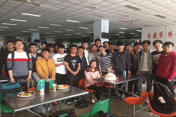 15级勘查一班围坐在在一食堂,为班花庆祝女生节。隔着屏幕都闻到了幸福的味道呢!