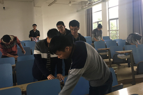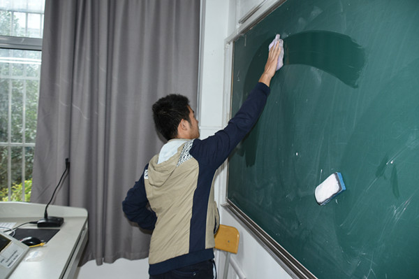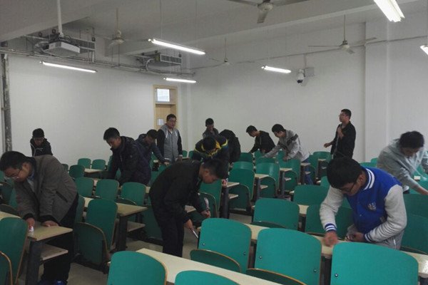 活动前,辅导员组织各班班长、副班长等学生干部专门就此次志愿服务活动进行了实地考察和工作布置。活动中,248名学生使用学院统一下发的清洁工具及自带的抹布、脸盆等清洁用品来到各班指定的教室,为该教室进行课桌文化清除,并打扫教室卫生、清理杂物、清扫桌面及地面等。同学们不怕脏、不怕累,表现出了很高的积极性和责任心,一些桌面的痕迹较难除去,便倒上洗衣粉用力擦拭,经过数小时的奋战,一张张课桌在同学们的共同努力下焕然一新,教室顿时也变的明亮起来。同学们分工明细配合默契,圆满完成了本次主题志愿服务活动,受到了使用教室的老师和同学们的一致好评。