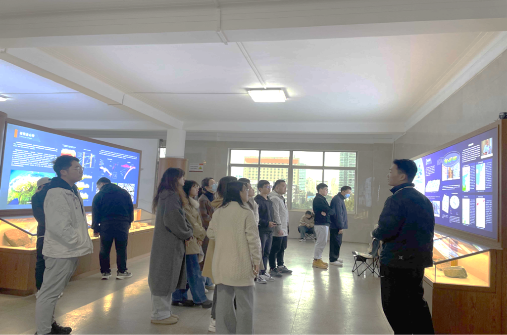 活动伊始,同学们在地质博物馆讲解员的带领下,直观感受地球深厚历史底蕴、体悟学科发展脉络。从地质变迁历史到郯庐断裂带发现历程,从资环教师科研育人故事到地质学家奋勇争先的拼搏精神,大家在展厅中逐步探寻科学前辈追求真理的决心和矢志不渝的报国情怀。