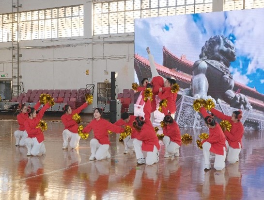 资环研究生啦啦操代表队由15人组成,以“青春逢盛世,激昂中国情”为口号,通过整齐而富有激情的舞步,饱满的精神和灿烂的微笑,演绎出舞动的青春,编织着文化的赞曲,诠释了新时代研究生的阳光活力。精彩的舞台表现背后凝聚着资环学子的辛苦付出。自10月初以来,资环研究生啦啦操队勤学苦练、反复排练,精心雕琢每个动作细节,力求展现一场完美的表演。