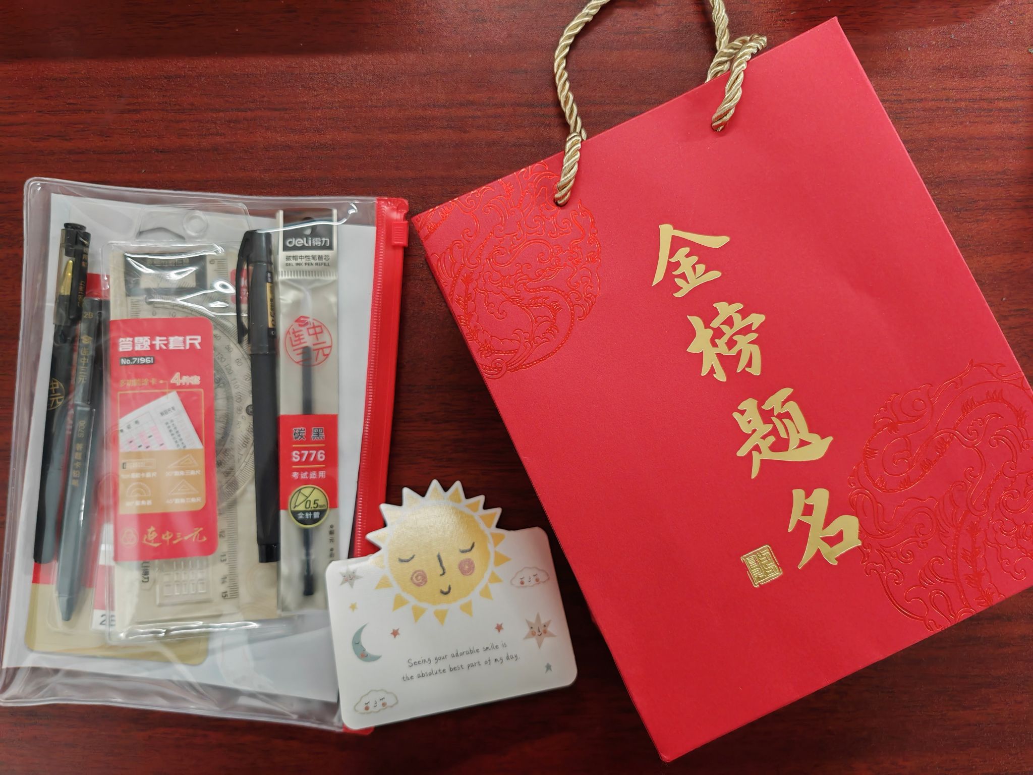 各支部的党员同学为考研同学写祝福卡片,希望可以通过书信与明信片,让考研同学感受温暖、舒缓压力。学院领导和辅导员老师深入学生宿舍为每一名考研同学送上精心准备的文具礼包。学院同时组织拍摄了考研祝福视频,为考研学子们加油打气,希望考研学生都能得偿所愿,成功上岸。