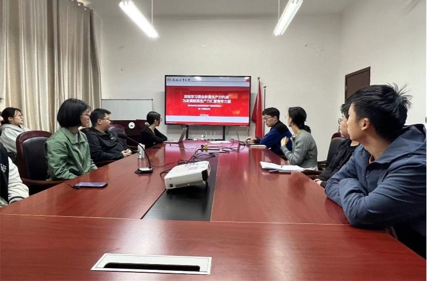 活动伊始,23级环境科学与工程博士生陈伟哲同学从新质生产力概念的提出、定义、催生因素以及发展新质生产力的核心要素带领大家开展了理论学习,随后结合自己的研究方向与进展,阐述了如何在科研工作中推进高质量科技创新,并鼓励同学们要勇立时代潮头,积极投身于新质生产力的实践探索中,为实现中华民族伟大复兴的中国梦贡献青春智慧和力量。