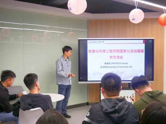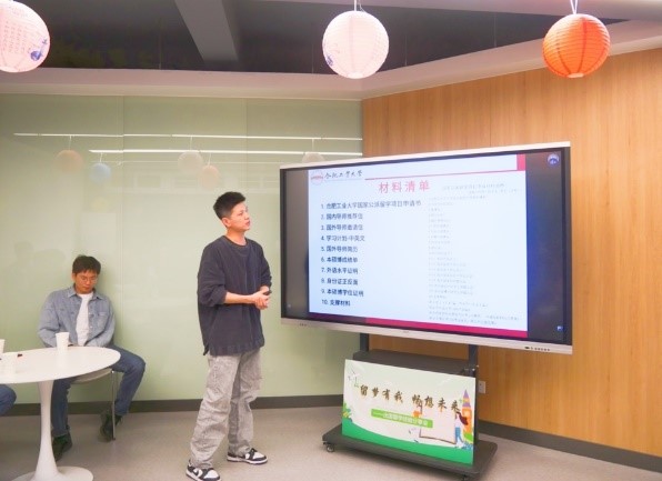 活动开始,资环学院留学浦项科技大学的束道兵详细分享了留学申请的全过程,他特别强调了提前规划和充分准备的重要性,提醒同学们在申请过程中要注重细节,充分展示自己的优势和潜力。=接着,资环学院留学美国辛辛那提大学的王汉林结合自身经历,为同学们提出了留学过程中学习和生活方面的实用建议。他提到,语言沟通是留学初期最大的挑战之一,因此建议大家日常注意提高英语水平。最后,汽交学院曾在加拿大滑铁卢大学深造的张洋将自己在学术研究、日常生活等方面的经验概括为“勇敢尝试,开阔视野;深入学习,学术成长;建立网络,未来合作;体验文化,生活成长”,为有意向留学的同学们提供了宝贵的第一手的资料。