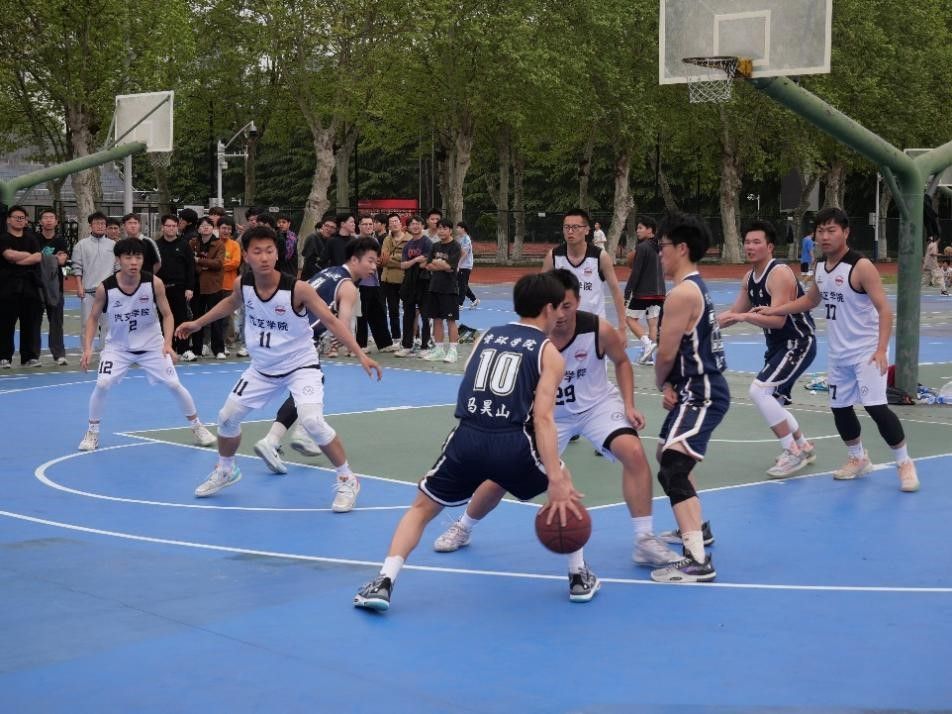 4月10日下午,资环学院与汽交学院在屯溪路校区开始了第一场小组赛对决。场上队员们积极投入、全力以赴,场下的队员为他们呐喊加油。在比赛过程中,双方比分交替上升,气氛热烈,最终资环学院以34:25的比分,迎来了首场比赛的胜利。4月13日下午,资环学院和管理学院在屯溪路校区进行第二轮小组赛比拼,资环男篮面对对手的猛攻,球员们毫不示弱,迎难而上,场上的气氛愈发紧张。队员们在笃定的信念和拼搏中,努力打好每一个球。资环学院虽以27:35的比分惜败,但男篮成员们及时调整心态,积极备战下一场比赛。4月21日下午,资环学院和计算机学院在翡翠湖校区进行最后一场小组赛对决,这场比赛是资环男篮能否出线的关键一战。随着哨声响起,资环学院的运动员们采取主动出击,以矫健熟练的动作迅速传球,直逼篮板。对方队员也迅速进入状态,开始你争我夺、你攻我守,球场氛围异常激烈。最终,资环学院以41:18的大比分取得胜利。