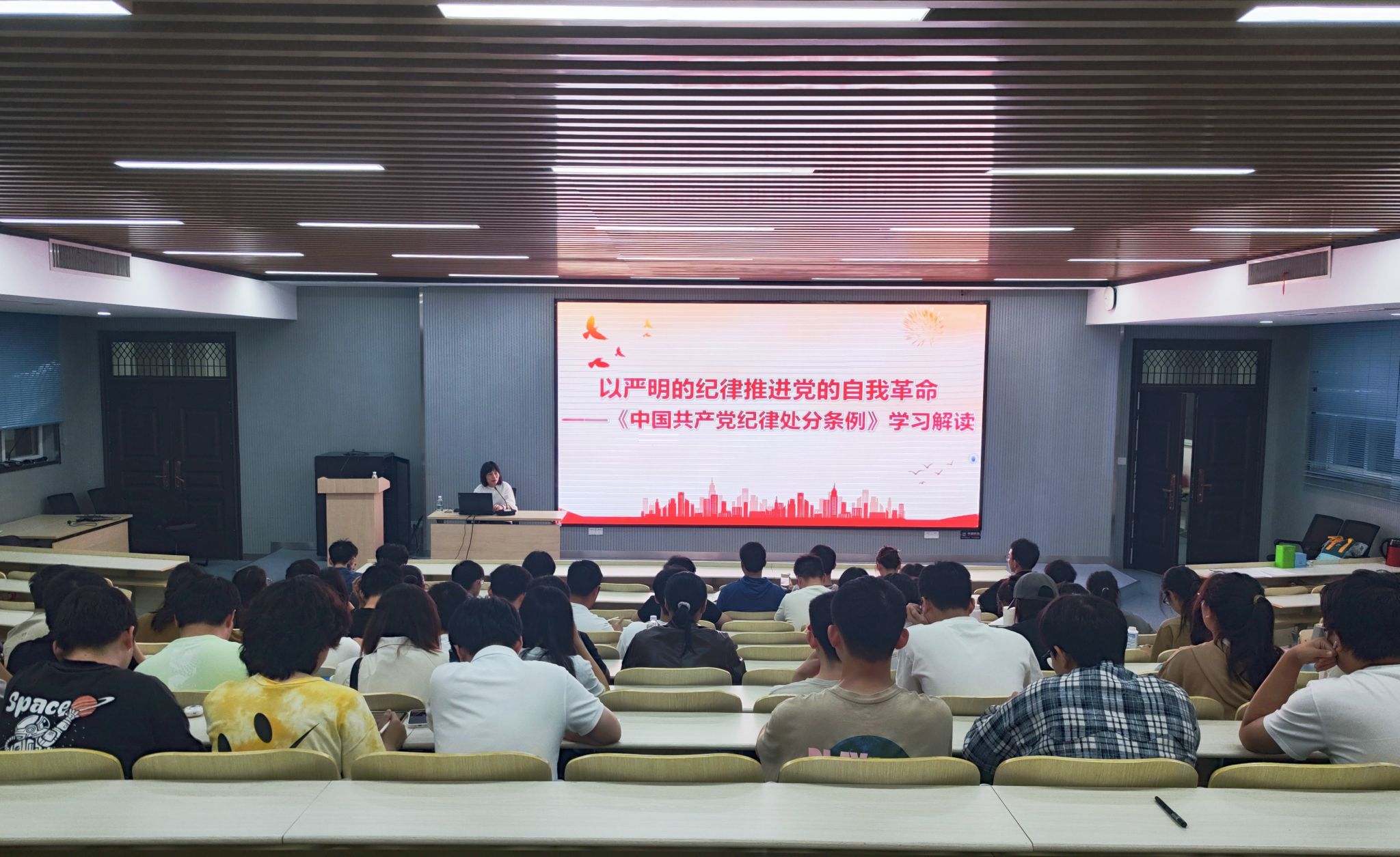 鲍丽娟以“以严明的纪律推动党的自我革命”为题,带领全体学员学习解读《中国共产党纪律处分条例》,她阐述了《中国共产党纪律处分条例》修订的重大意义,结合实际案例具体讲解《中国共产党纪律处分条例》的内容,并从同学们的学习生活出发,希望全体学员一是要深入学习,准确理解条例;二是要以身作则,做遵守纪律的楷模;三是要强化纪律教育,营造学纪守纪氛围,以风清气正的政治生态引领营造更加良好的育人生态。
