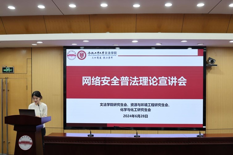 为进一步提高研究生对网络安全的认识,增强全民法治观念、网络安全意识和防护能力,6月28日下午,taptap点点官方网站、文法学院、化学与化工学院在学术会议中心第二报告厅共同举办了网络安全普法活动。本次活动由文法学院普法宣传团成员胡京京同学与郑思怡同学主讲,资环学院、化工学院八十余名研究生参加。