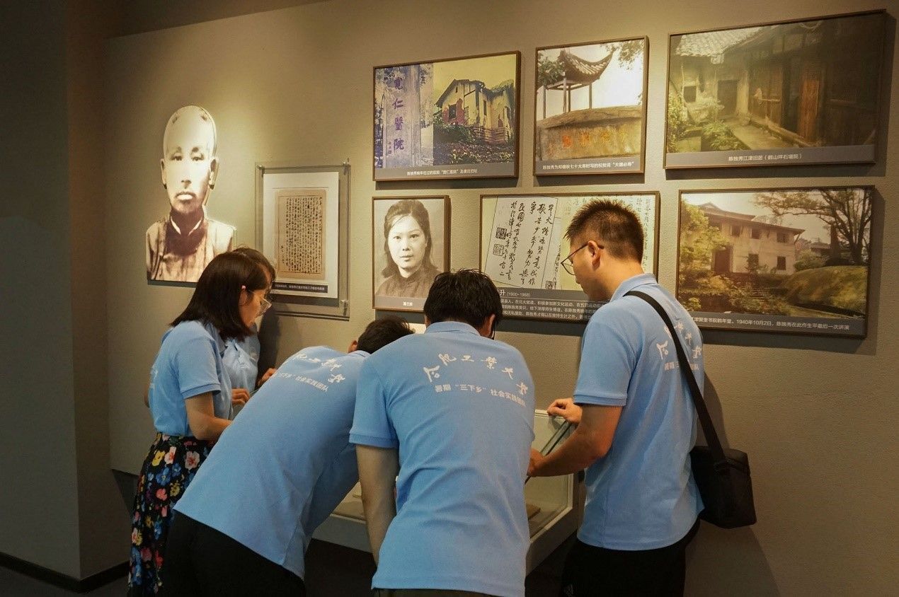 明镜所以照形,古事所以知今。7月13日上午,实践团队探访了位于安庆市的红色教育基地——独秀园。跟随讲解员的脚步,实践团队围绕“开启民智,反帝爱国的先驱者”“觉醒年代,勇立潮头的引领者”“开天辟地,建党伟业的组织者”“走出监狱,矢志抗战的爱国者”四个主题,全面系统地了解陈独秀先生的生平事迹、思想理念及重要贡献。一幅幅生动的图片,一件件珍贵的文物,使大家对陈独秀先生的生平事迹有了更深入的了解,从中感受到陈独秀先生为中国共产党的创立和建设所作出的伟大贡献。