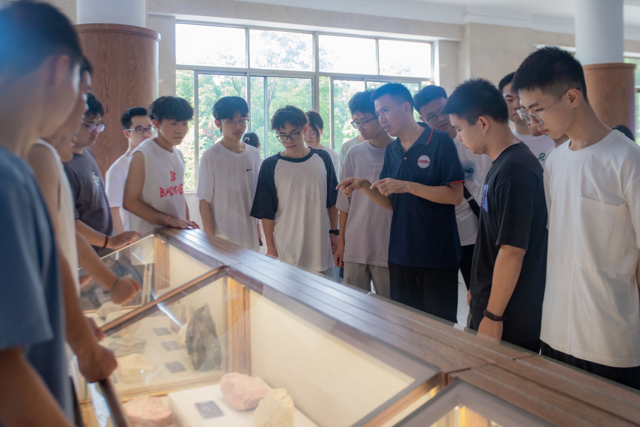 活动中,学院科普导师徐利强、沈岳峰老师为同学介绍了taptap点点地质博物馆馆藏状况以及将专业教育第一课放在地质博物馆的重要意义。随后,新生们在两位老师的带领下,分别参观了位于主教学楼的史前生命厅、地球物质厅、地球厅。校地质博物馆通过岩石矿物标本、资料图片、文字讲解、模拟场景等方式,生动地向同学们展示了地球从诞生至今的生命演化过程与地质变迁、地质资源的分布埋藏状况、矿物科普知识等。活动最后,两位老师寄语同新生们要以此次活动为契机,明确专业学习规划,扎实学好专业知识,为地学学科与地质事业发展贡献青春力量。