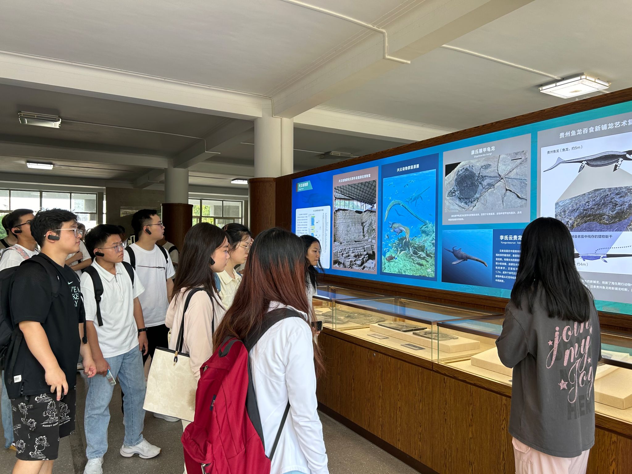 随后,同学们来到了位于主教学楼的学校地质博物馆。在地质博物馆,新生系统补充了地学相关知识、直观了解到专业发展脉络。从地质变迁历史到郯庐断裂带发现历程,从资环教师科研育人故事到地质学家奋勇争先的拼搏精神,大家在展厅中逐步探寻科学前辈追求真理的决心和矢志不渝的报国情怀。