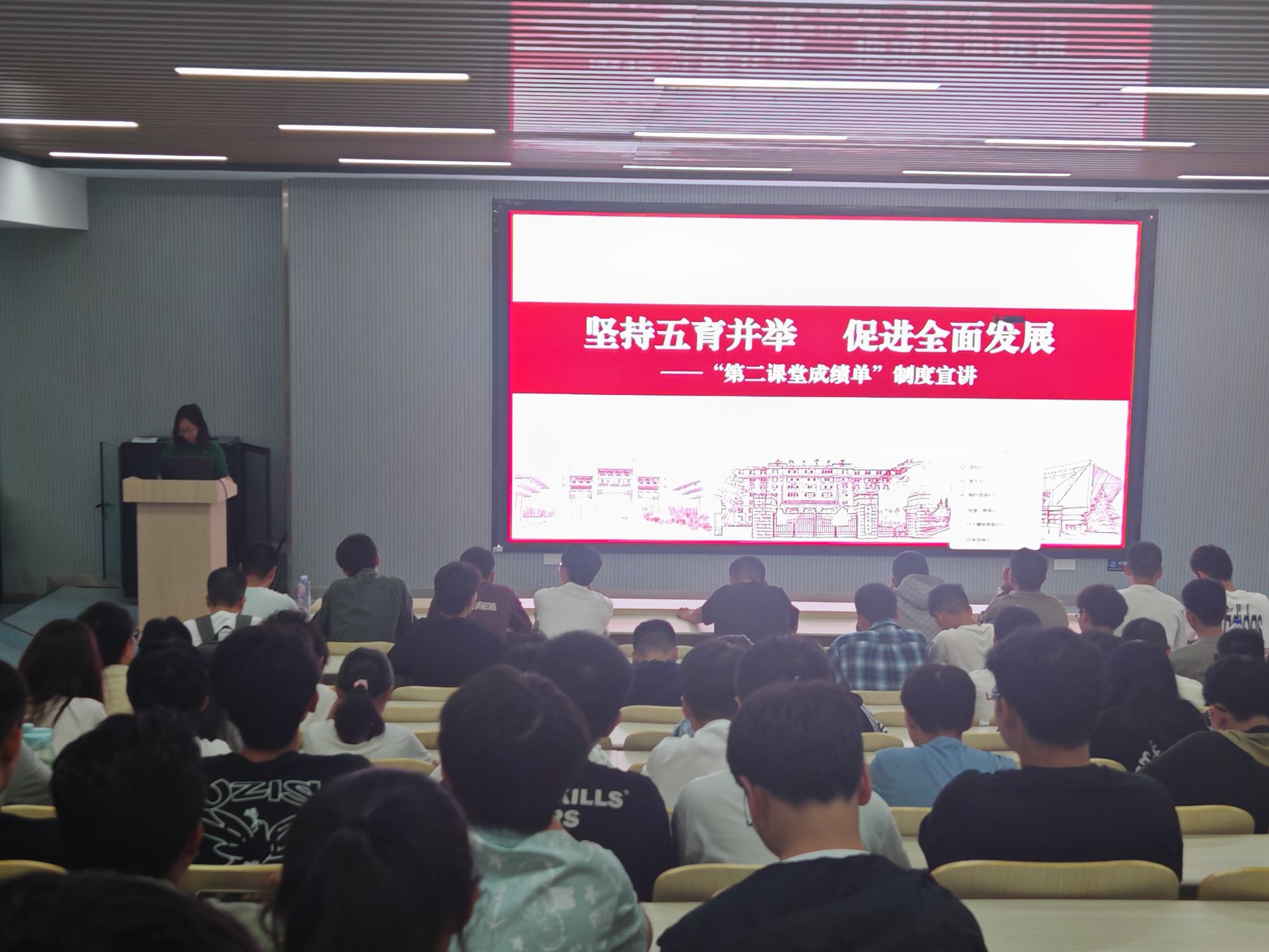 10月16日下午,资环学院2024级本科新生“第二课堂成绩单”制度宣讲会在西教学楼301报告厅举行,院团委书记王锐琴老师担任主讲,2024级全体本科新生参会。