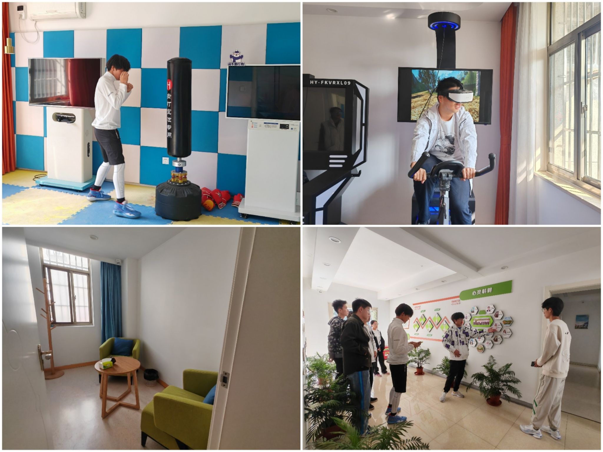 在中心工作人员的讲解下,同学们依次参观了团体辅导室,情绪宣泄室,冥想室,沙盘游戏室,以及咨询室等。讲解员向大家重点介绍了心理咨询区的设置和咨询流程,强调了心理咨询对于解决心理问题的重要性,鼓励同学们在遇到困难时积极寻找帮助。同学们踊跃体验了虚拟骑行、沙盘、宣泄等功能。活动结束后,同学们纷纷表示受益匪浅,23级遥感班付蕾同学表示“原来有这么多有趣又有用的设备可以帮助我们调整心态,以后会更加关注自己的心理状况,积极自我调整,遇到问题及时寻求心理中心帮助”。
