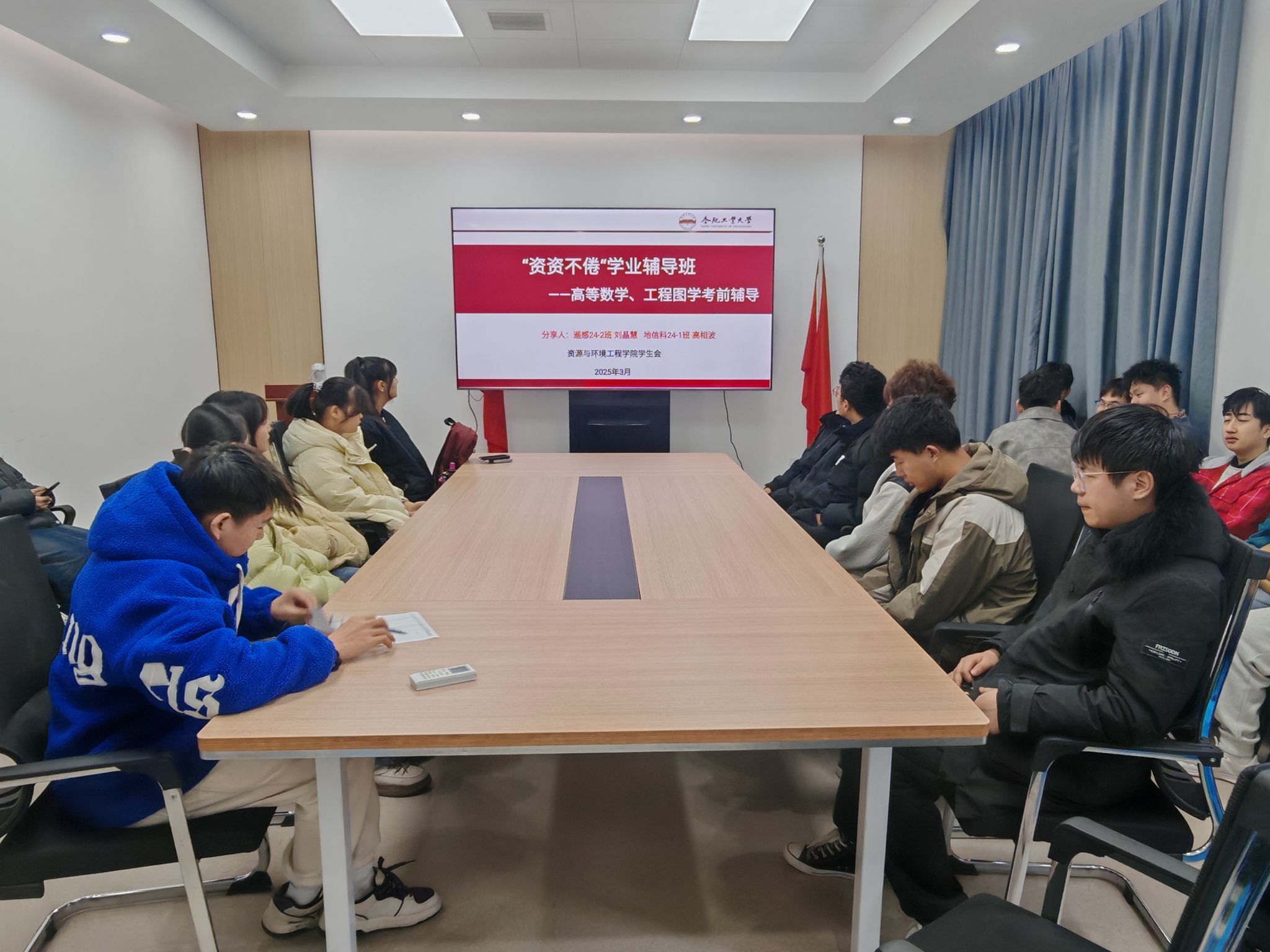 本次学业辅导特邀地信科24-1班高相波、遥感24-2班刘晶慧两位同学担任主讲,为同学们系统梳理课程重难点,三人通过知识串讲+真题演练+答疑互动”的模式,精准破解学习堵点,并为学生定制个性化复习计划。参与学生纷纷表示:本次辅导让我对薄弱环节有了清晰认知,不仅缓解了考前焦虑,更明确了备考方向、提升了备考效率。