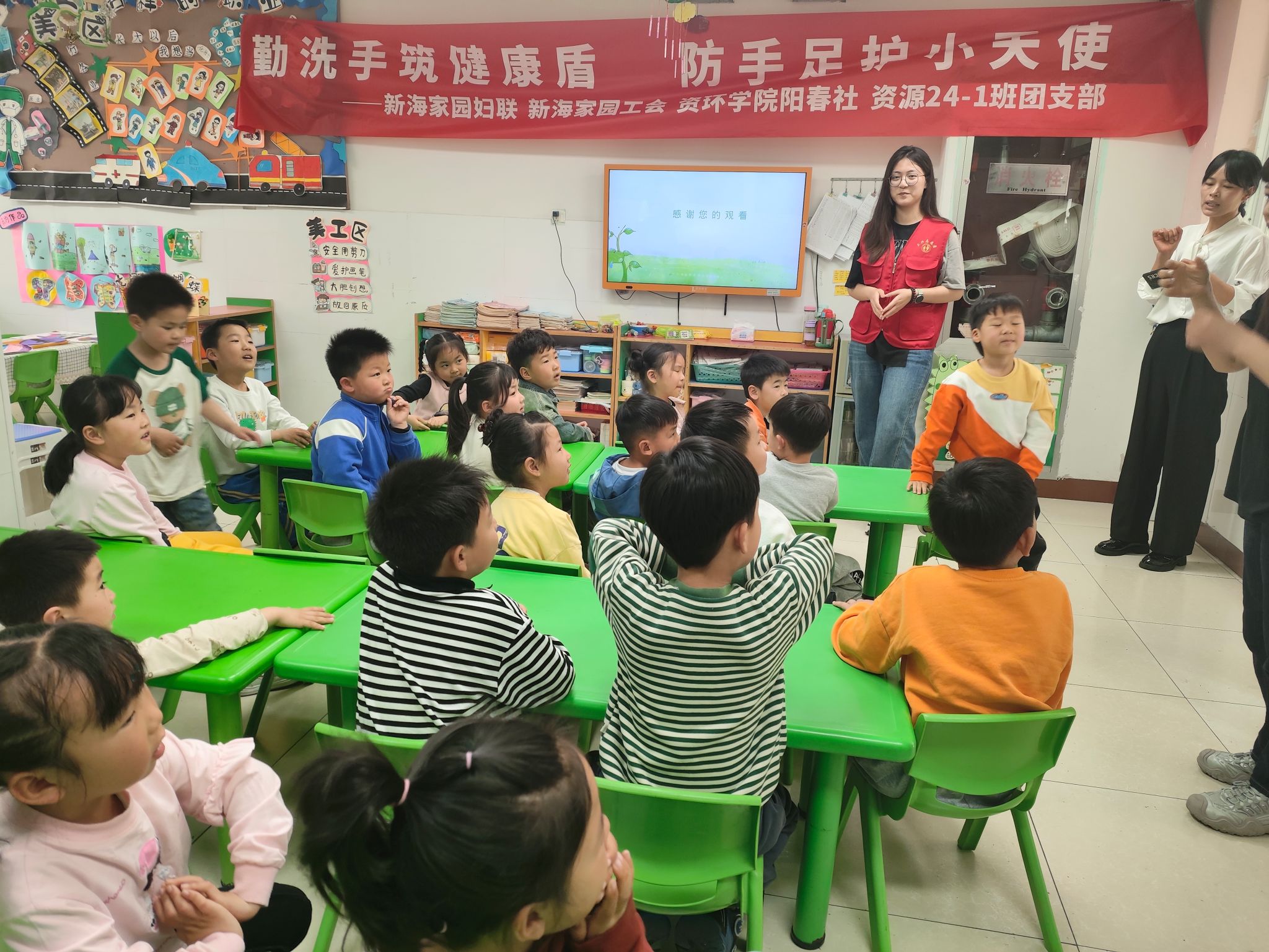 为弘扬志愿服务精神,普及儿童卫生健康知识,3月26日,资环学院阳春社、资源24-1班团支部携手新海家园妇联、新海家园工会,走进新海家园幼儿园,开展了“勤洗手筑健康盾,防手足护小天使”手足口病预防知识宣讲活动,通过寓教于乐的方式,帮助孩子们养成良好的卫生习惯,守护儿童健康成长。