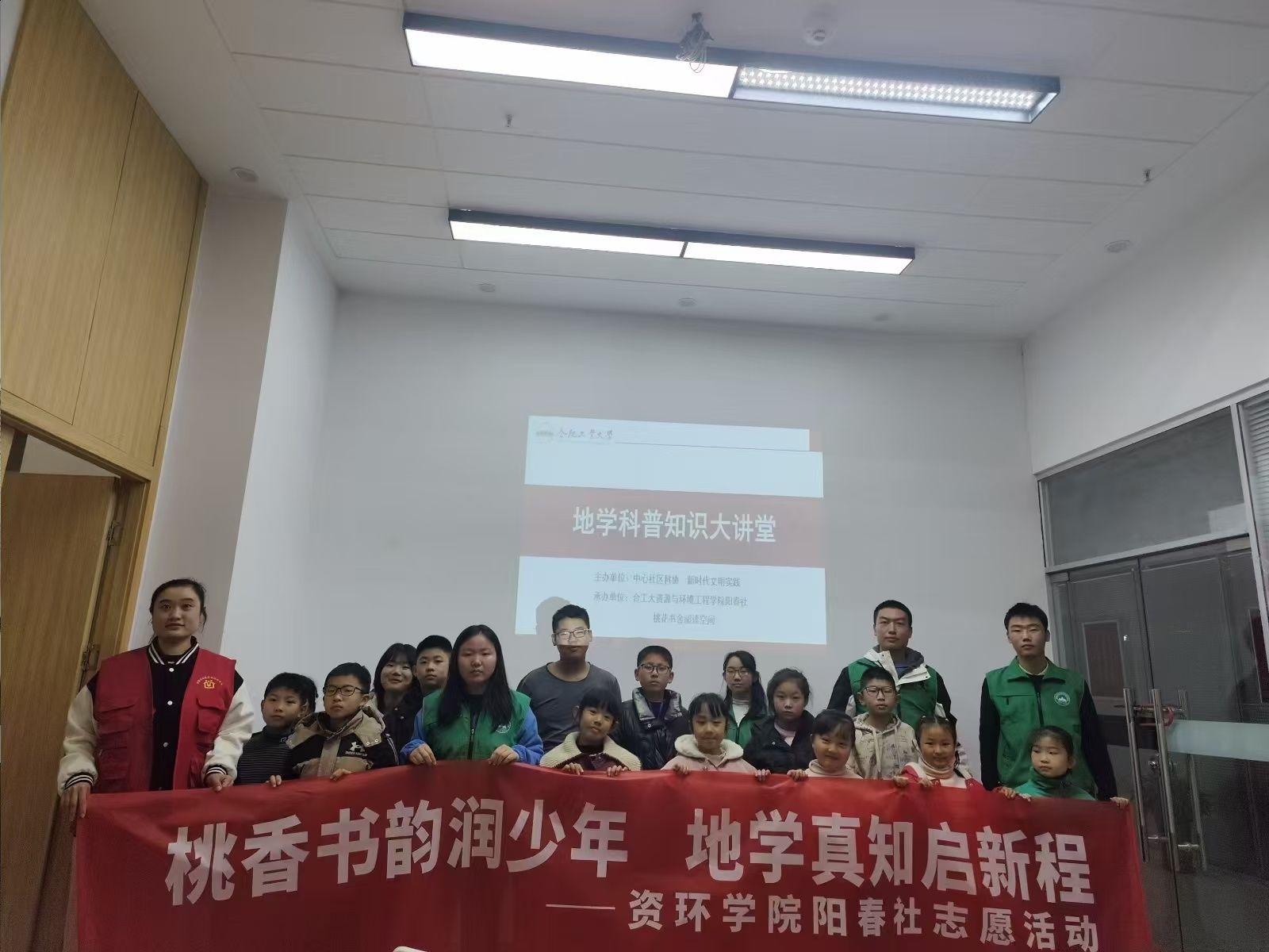 为深化地球科学普及教育,激发青少年探索自然奥秘的热情,近日,资源与环境学院阳春社联合新型家园社区“桃花书舍”,开展“桃香书韵润少年,地学真知启新程”地学知识宣讲活动,通过趣味科普与互动实践,为50余名社区儿童揭开地球科学与行星探索的神秘面纱。