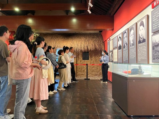 安徽第一面党旗纪念园位于寿县小甸集,是安徽最早的党组织诞生地。同学们首先来到革命烈士陵园,在高耸庄严的革命烈士纪念碑前,“革命英烈永垂不朽”映入眼帘。全体学员面对党旗,紧握右拳,重温入党誓词,进行庄严宣誓。随后,同学们共同参观了小甸集特支纪念馆、淮上中学补习班等。在讲解员的带领下,依次参观了“烽火寿州”“红色特支”“峥嵘岁月”“继往开来”四个展厅内容,认真观看了馆内的文物和资料,学习了典型的历史人物和重大的历史事件,共同追忆革命先烈艰苦卓绝的斗争精神,深切缅怀革命先烈的丰功伟绩,深刻领会共产党人为民族独立、人民解放、国家富强而不懈奋斗的坚定信念。