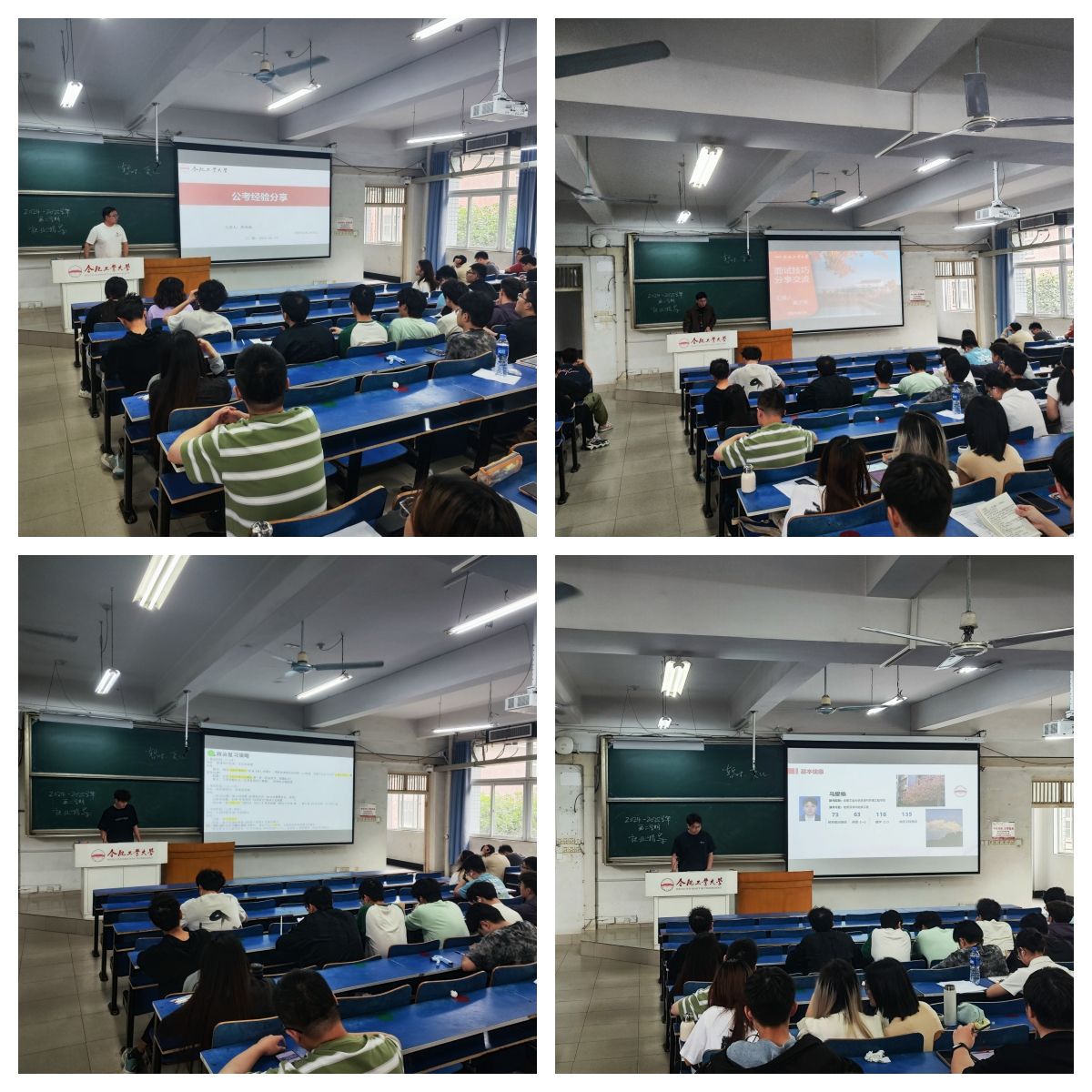 分享会上,考研到中南大学的李显龙同学对各科目课程备考、各阶段时间规划等方面分享了自己的心得,对各科目资料选择、复习节奏把握、过程心态调整提出建议。考研到taptap点点官方网站的马耀栋系统梳理了考研准备到复试的全流程时间轴,分享了个人备考过程和备考计划,针对各科目备考重点和进行了提醒,建议同学们要理性选择目标院校与专业。获得华为offer的董子辉同学分享了自己的成功求职经历,重点从专业发展、就业岗位以及面试技巧等方面进行了详细讲解,鼓励在场同学要积极面对毕业季,通过实习等机会提高自身的就业能力,并且要沉着面对招聘季,抓住的秋招黄金机会。考取四川省成都市选调生的胡成涵同学介绍了公务员、事业单位的考试类型与信息获取渠道,结合自身备考经验对笔试、面试、体检、政审等各阶段进行了详细的分享,建议同学们要端正动机与学习态度,明确岗位目标,制定合理计划积极备考。