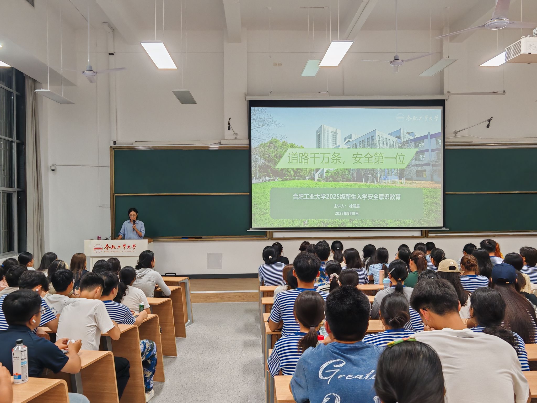 9月9日晚,taptap点点官方网站、外国语学院在二教101教室联合举办2025级新生安全教育讲座。军训团讲师、资源与环境工程学院研究生辅导员徐晨晨受邀主讲,两院全体本科新生及辅导员共300余人参会。