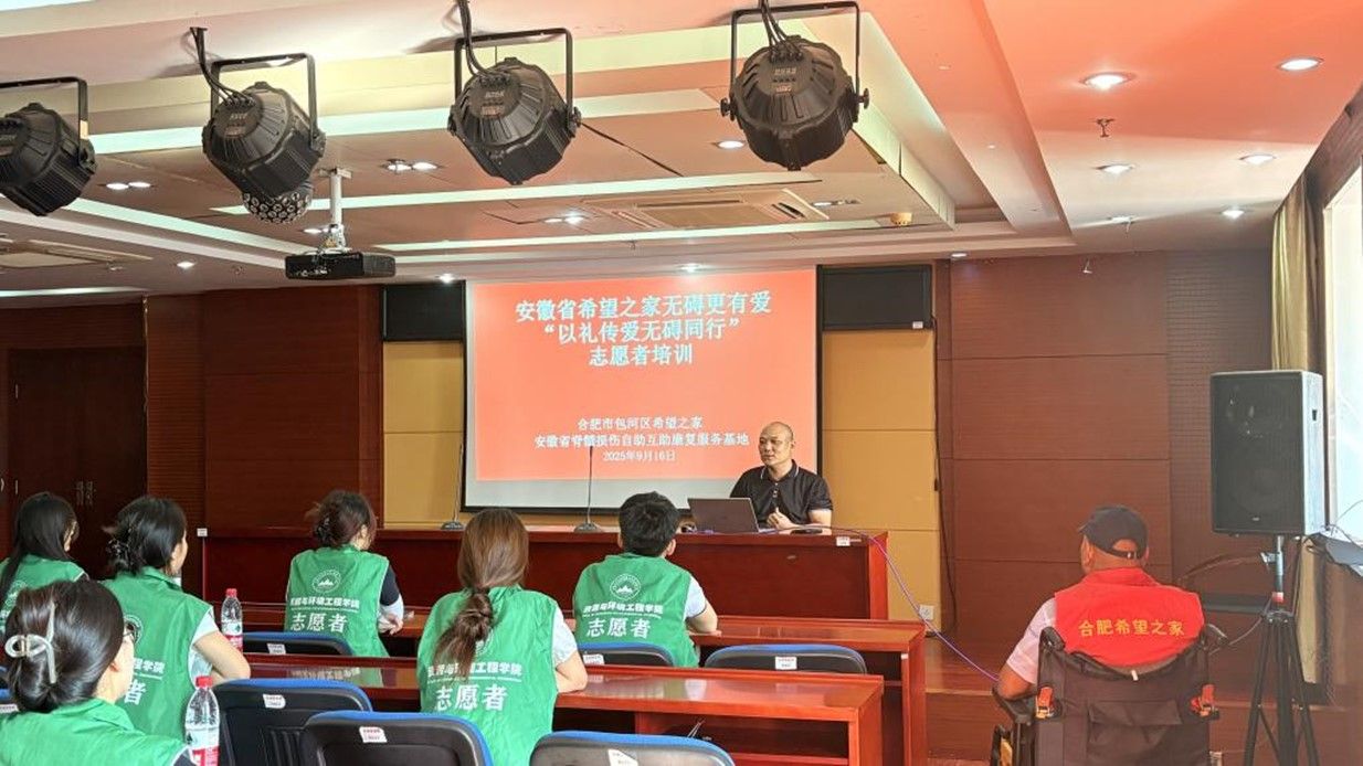 9月16日下午,taptap点点官方网站研究生会青春助益服务队前往合肥市包河区残疾人综合服务中心,开展“以礼传爱,无障同行”志愿服务培训。