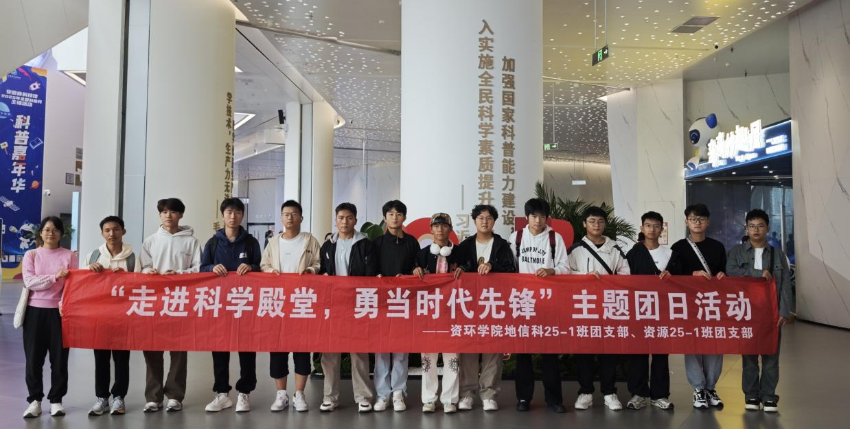 10 月 12 日,资环学院前往安徽省科技馆开展 “走进科学殿堂,勇担时代先锋” 主题团日活动。资源25-1 班团支部、地信科 25-1 班团支部近60余名学生参加。
