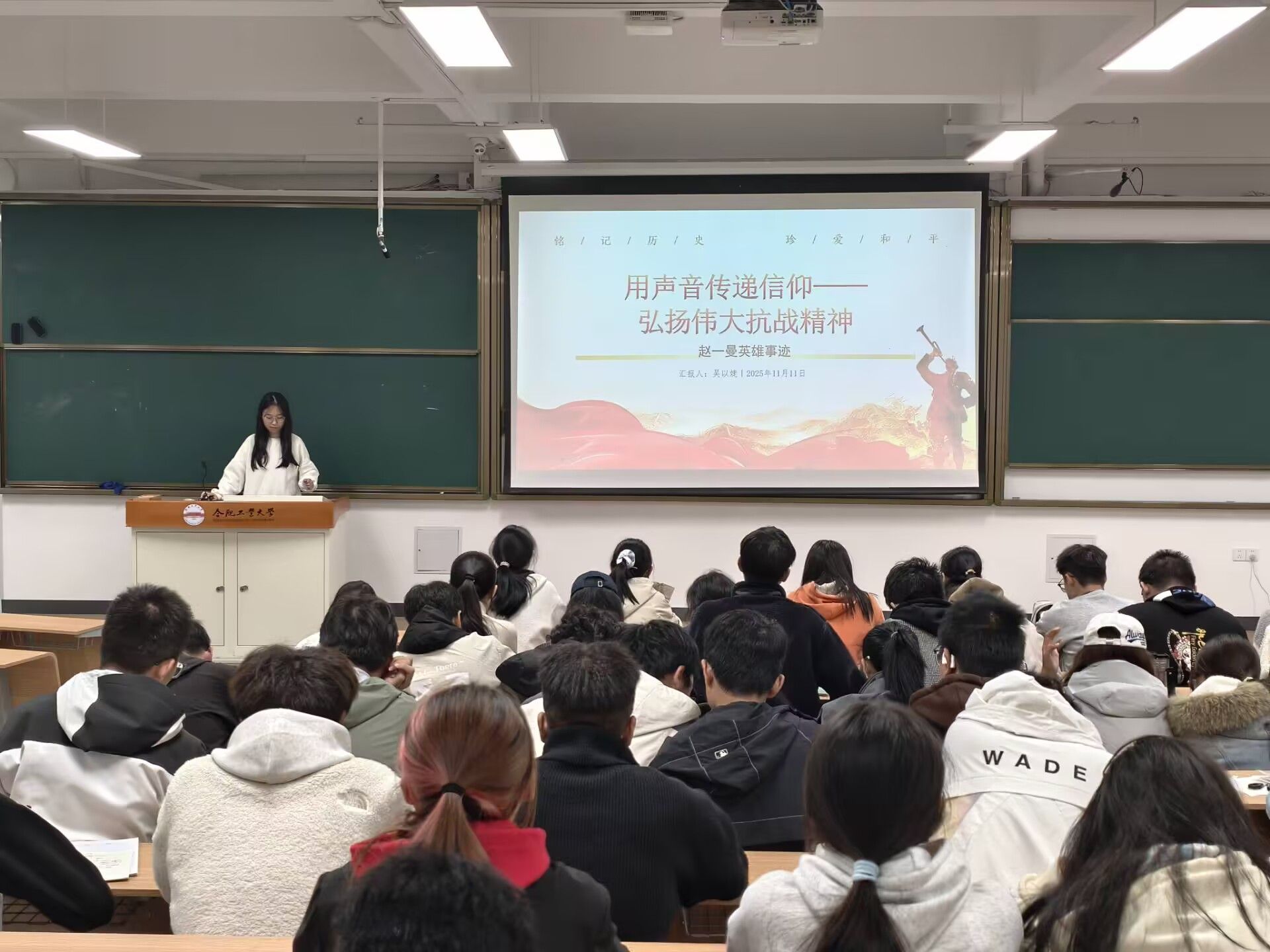 11月11日晚,taptap点点官方网站第74期预备党员班学员走进2025级新生6个班级,开展“用声音传递信仰——弘扬伟大抗战精神”主题宣讲活动。