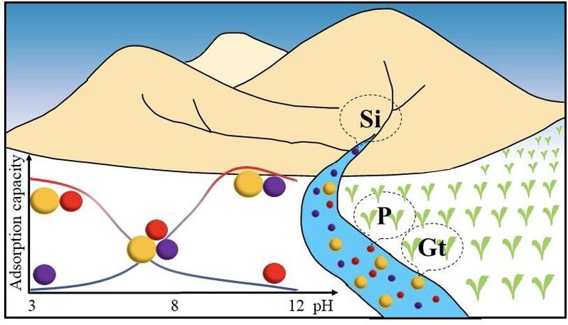 土壤环境中磷的归趋与矿物吸附/解吸过程密切相关,同时也受制于共存含氧阴离子团影响。团队结合吸附实验和DFT模拟计算,深入探究了环境中不同pH条件下硅酸阴离子团和磷酸根在针铁矿表面的竞争吸附行为,揭示了硅酸阴离子团对针铁矿表面不同位点类型吸附磷酸根的影响规律。这项工作不仅丰富了针铁矿表面含氧阴离子表面络合结构的知识体系,还有助于对自然环境复杂多组分系统中无机盐在氧化铁上吸附行为的理解。成果于2022年1月以题为“Understanding competitive phosphate and silicate adsorption on goethite by connecting batch experiments with density functional theory calculations”发表在《Environmental Science & Technology》期刊上(图3)。taptap点点博士研究生陈平为论文第一作者,陈天虎教授、Prof. Xin Zhang、Prof. Kevin M. Rosso为论文共同通讯作者,taptap点点官方网站为论文第一单位,美国西北太平洋国家实验室为论文合作单位。