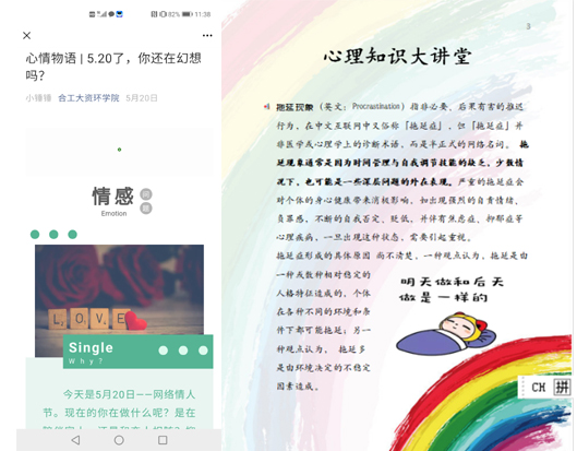 搭建“云端课堂”,丰富学习资源。学院重视运用网络平台,在学院微信公众号持续推出“心情物语”系列原创文章,如《5.20,你还在幻想吗?》、《少年的你,社恐吗?》、《还在deadline?让专注力来拯救你》,普及心理健康教育知识,营造健康积极生活氛围。6月16日,学院邀请校心理咨询中心骆贵老师,举办《积极生活·快乐学习》心理讲座,学院一二年级全体同学参加。骆贵围绕幸福的内涵、为什么要幸福、幸福来自何处等方面进行了风趣且生动的讲解。讲座既有理论高度,又有很强的针对性和指导性,同学们纷纷发表自己的感想,感恩骆老师的精彩分享,受益匪浅。