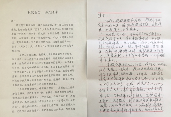 依托家长力量,探索“家庭教育+家校联动”新路径。学院通“云”家访、“云”直播、QQ群消息发布等形式向家长群体宣传和通报学校的人才培养模式、科研成果、资助政策、就业情况等信息,家长及时了解学院、学生动态,以提升认识带动家长群体的观念转变。开展“写给孩子的一封信”活动,让家长与学生通过传统书信的方式,实现跨越千山万水的“面对面”,寻求真实、真切、真情的沟通与交流。努力使家校教育步调一致,形成合力,引导学生合理定位,针对特殊群体学生与家长进一步交流,制定具体的帮扶计划,促进学生有效学习、健康成长。