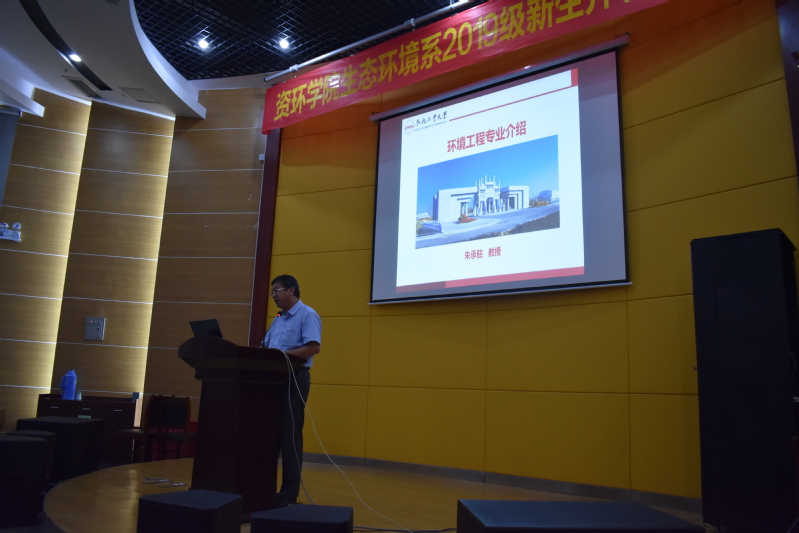 典礼上,2019级学生邹鄗明同学作为新生代表发言,表明了青年一代的决心和奋斗目标。接着,学院教师朱承柱教授从专业招生、专业课程设置、专业社会需求与就业情况等几个方面详细介绍了环境工程专业,使新生对自身专业有了更深的了解,增强了学科认同感。他指出“勤能补拙是良训,一份辛苦一份才”,他希望全体新生应该回归学习天职、回归求学初心,守住底线,自我实现,突破极限。他寄语全体新生在大学伊始要锁定目标、规划路径、健全自我。