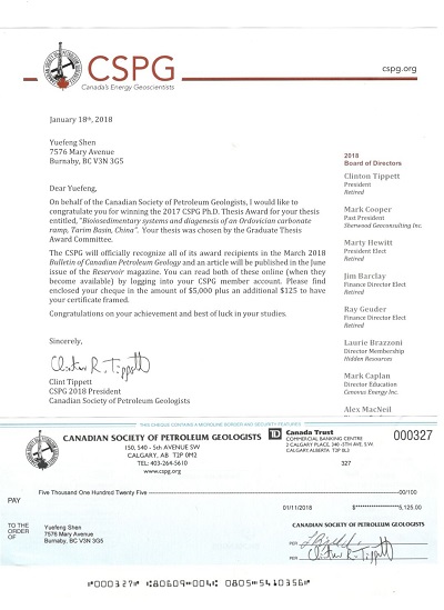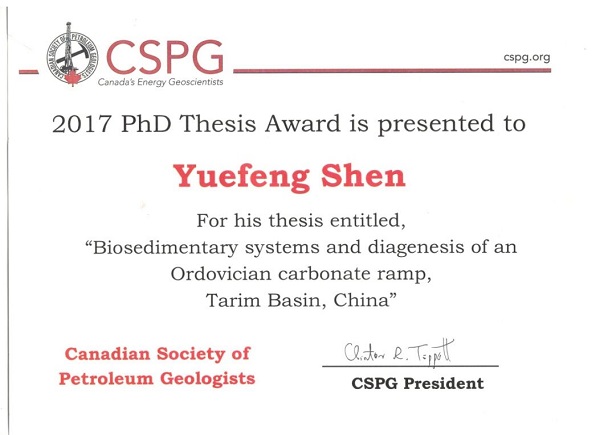 近日,加拿大石油地质学家协会(Canadian Society of Petroleum Geologists,CSPG)2017年度最佳博士论文奖评选揭晓。经过资格审核、通讯评议和专家评审,taptap点点taptap点点官方网站古生物学青年研究团队沈越峰博士的学位论文《Biosedimengtary Systems and Diagenesis of An Ordovician Carbonate Ramp, Tarim Basin, China》(塔里木盆地奥陶系碳酸盐岩缓坡生物沉积系统和成岩作用研究)获得本年度唯一最佳博士论文奖,并获得该协会授予的5000加元奖金。此次获奖是加拿大石油地质学家协会自1958年设立该奖项的60多年来第一次授予华人博士研究生。加拿大石油地质学家协会刊物《Reservoir》(2018年第二期)对此进行了专题报道。
